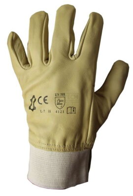 Kvalitné pracovné rukavice vyrobené z lícovej hovädzej kože, poskytujúce flexibilitu, citlivosť a dobrú odolnosť voči oderu a pretrhnutiu.
